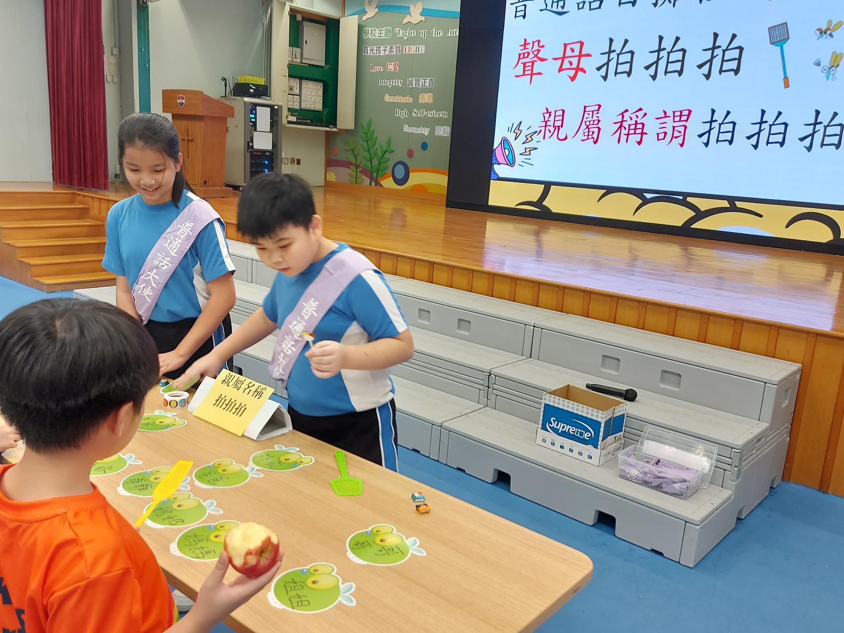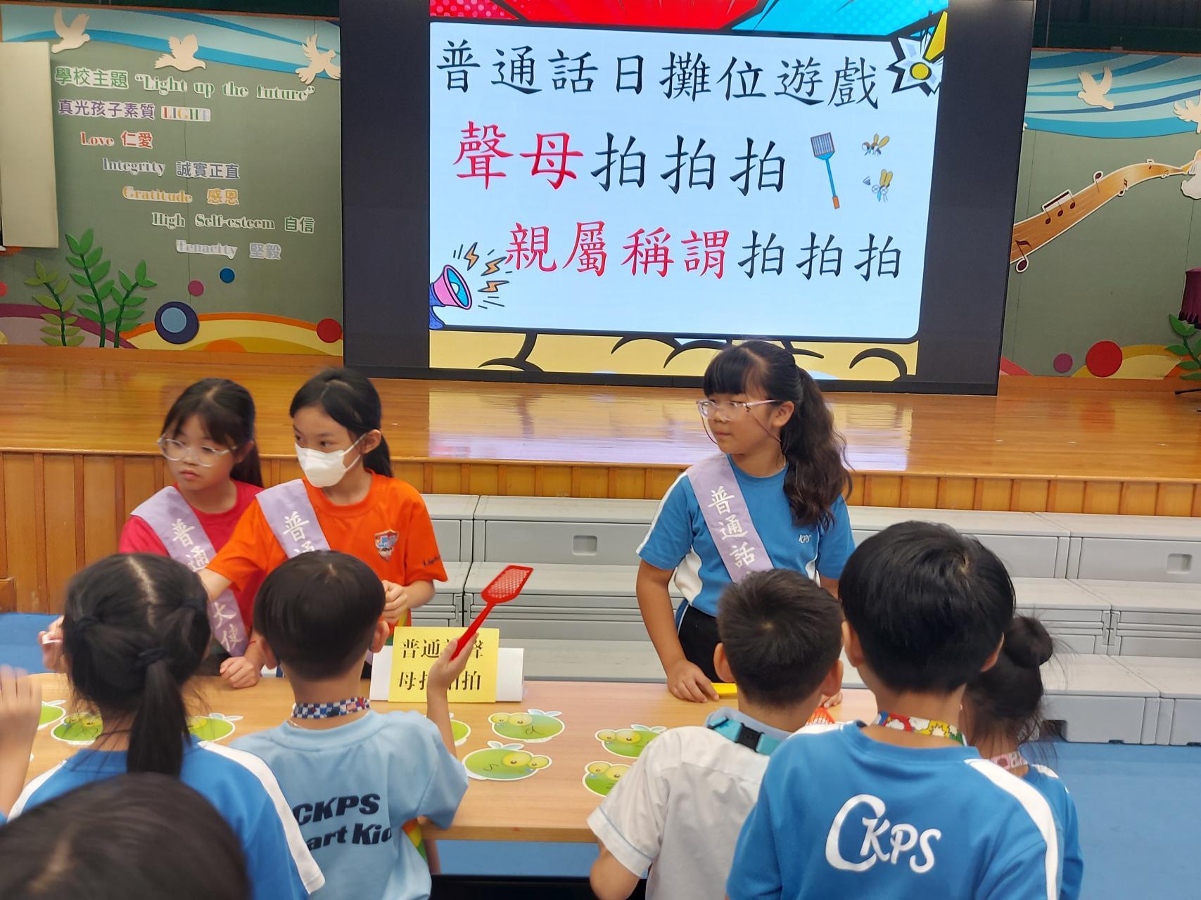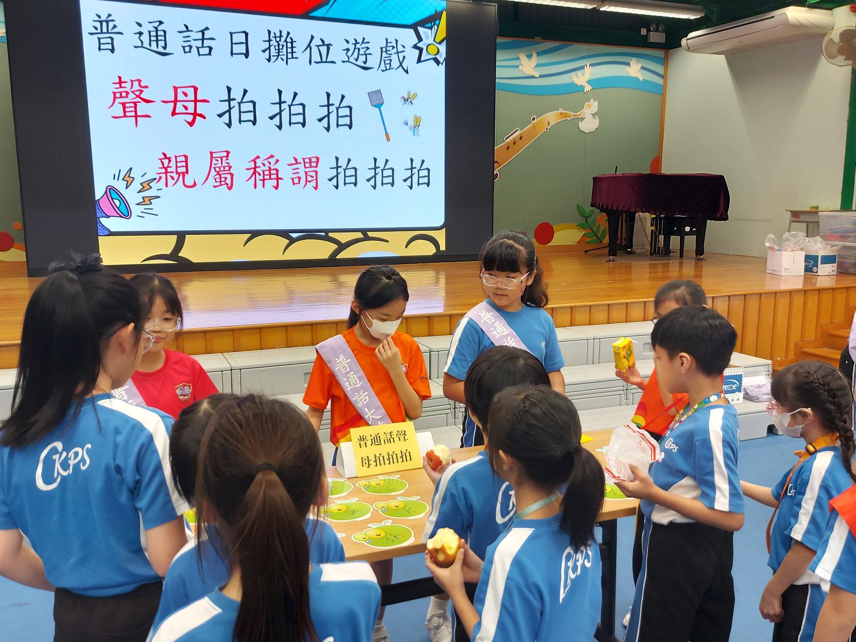 「普通話攤位遊戲」 | 舉辦多元化活動,例如親族稱謂語粵普配對、重組及朗讀與感恩相關的句子等,下學期將新設更多類型的遊戲。 | 普通話日 |