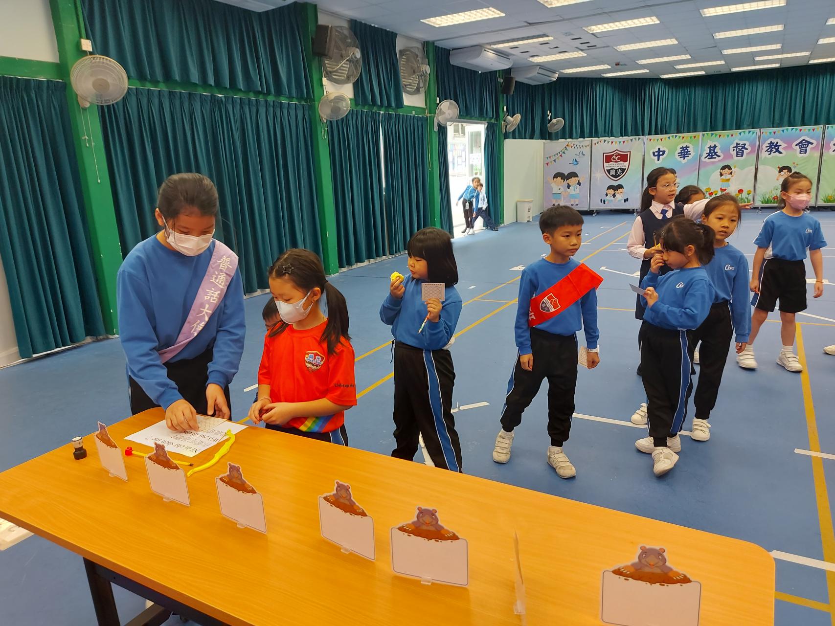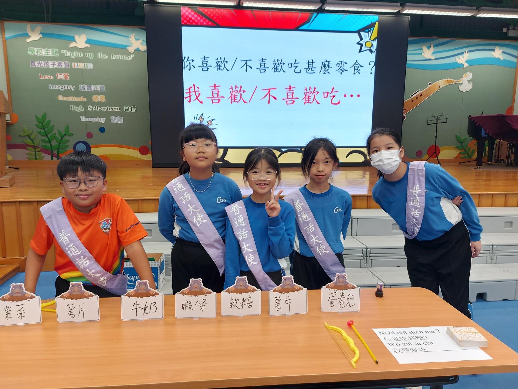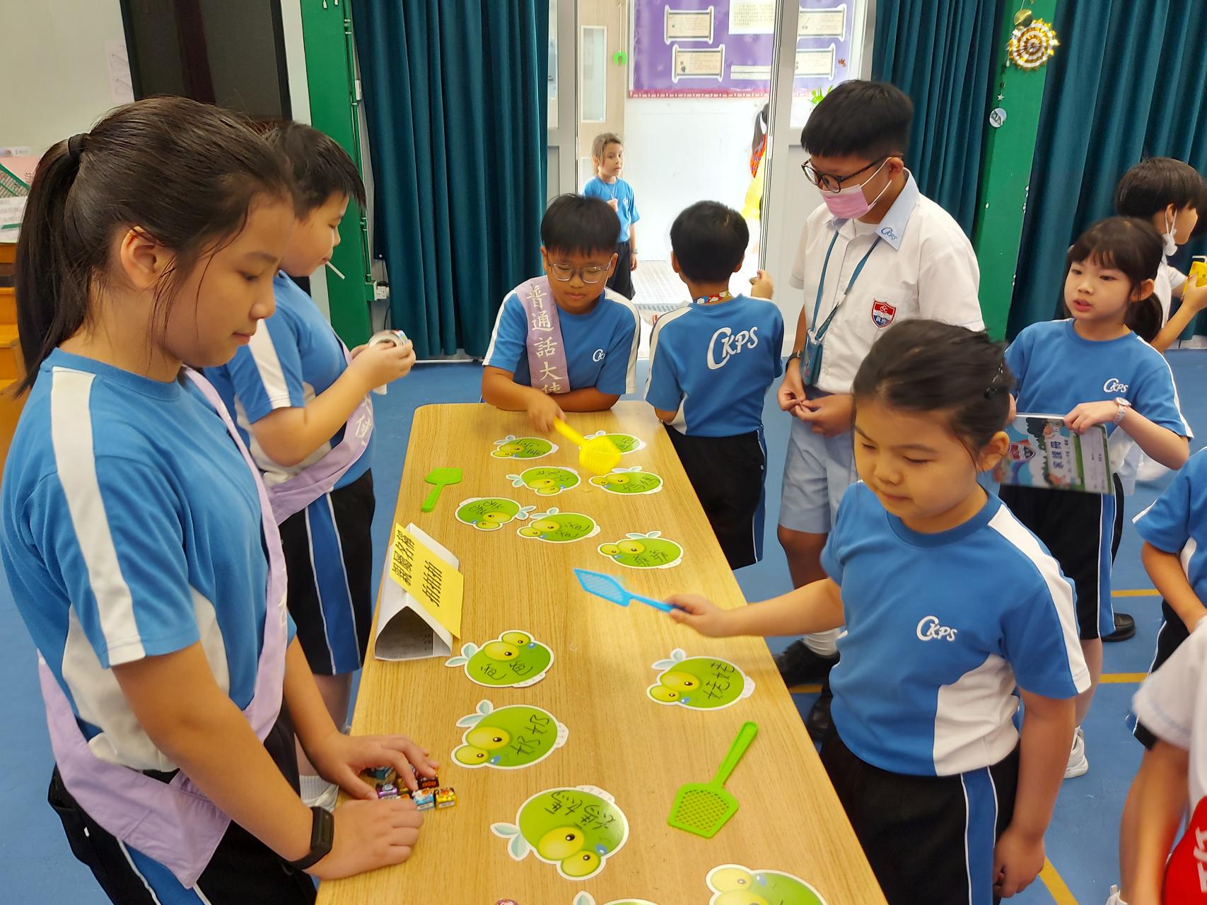 「普通話攤位遊戲」 | 舉辦多元化活動,例如親族稱謂語粵普配對、重組及朗讀與感恩相關的句子等,下學期將新設更多類型的遊戲。 | 普通話日 |