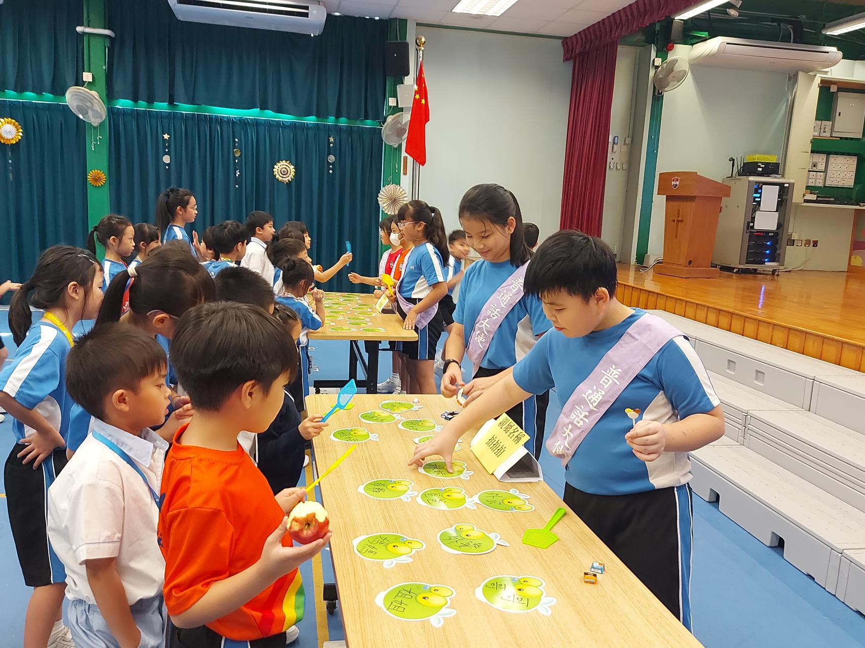 「普通話攤位遊戲」 | 舉辦多元化活動,例如親族稱謂語粵普配對、重組及朗讀與感恩相關的句子等,下學期將新設更多類型的遊戲。 | 普通話日 |